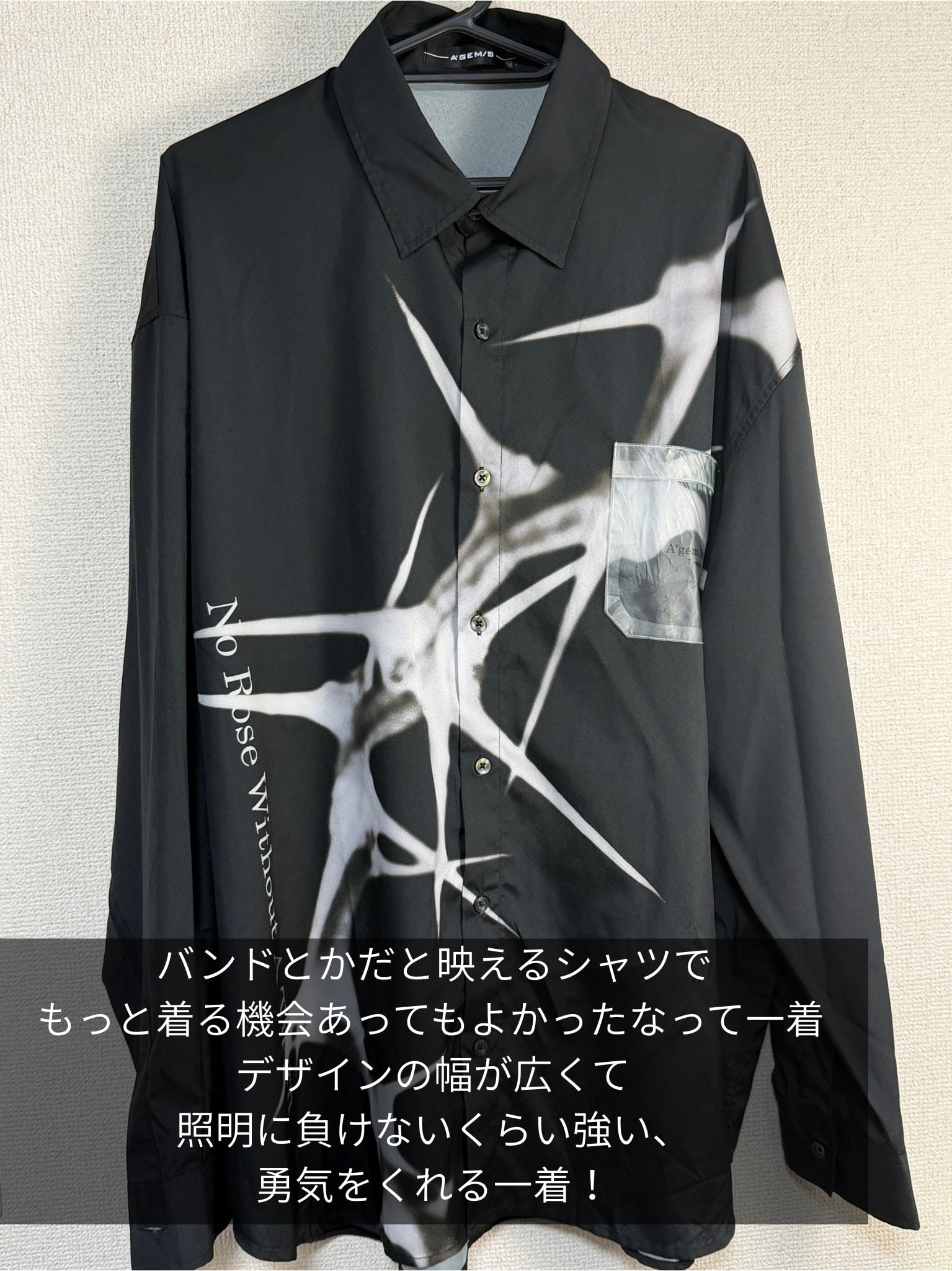 大学の文化祭でライブするんだっていうタイプで、それにまた「かっこいー」ってなるやつですね。うん、かっこいーシャツです。