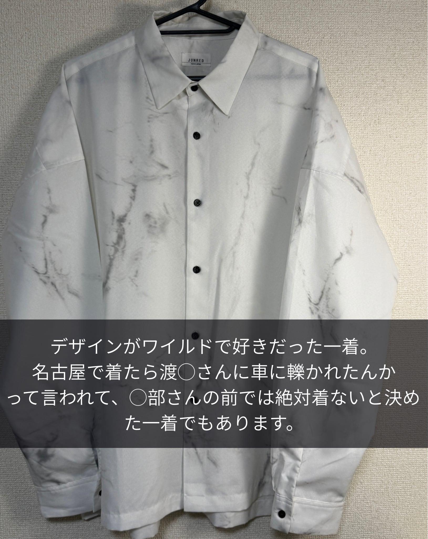 オーバーサイズでゆったり、そして高級感ある大理石調のマーブル。いいデザインですよ、ほんと。これ残ったら渡部さんに売りつけます。
